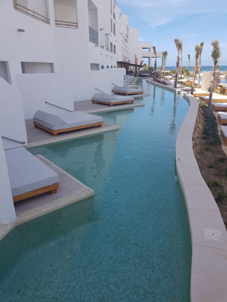 Este invierno hemos trabajado para planear y construir uno de los proyectos más ambiciosos de los que hemos realizados en la provincia de Cádiz. Se trata de un proyecto con varias piscinas para un nuevo hotel de cinco estrellas que se ha construido en Zahara de los Atunes.